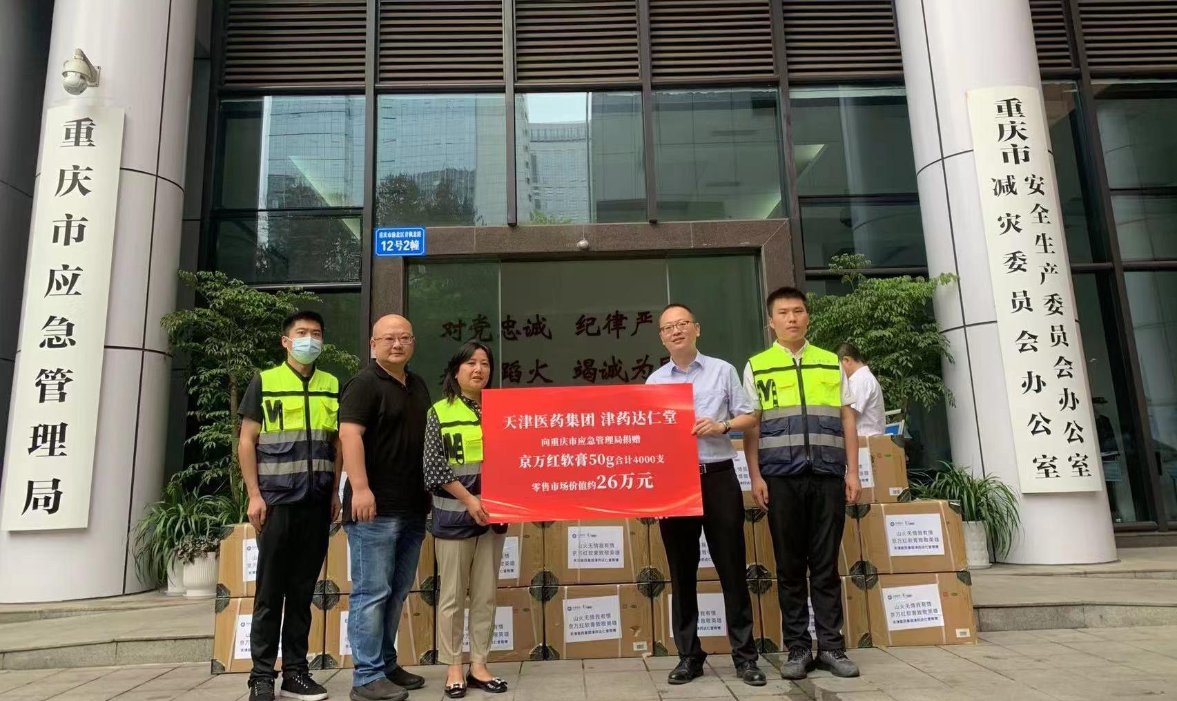 近日,受台风影响,京津冀等地遭遇了140年一遇的特大暴雨,给城市及周边地区造成了巨大灾难与损失。有着九河下梢之称的天津,在本次泄洪工作中承担着75%洪水入海重担,天津人民风雨同心,迎难而上,勇于担当,全力以赴应对洪水过境,最大限度保障人民群众生命安全。抗洪救援工作正值酷暑,救援人员已经持续多日连续奋战,得知该情况后,津药达仁堂集团紧急协调医药物资,第一时间赶往静海救灾现场,先后为983部队及蓝天、绿野等救援队伍捐赠解暑祛湿的藿香正气水等价值近20万元的防疫药品。